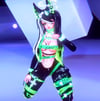 Quest is limited to 8 physbones total. This model includes physbones on: bum (2), boovz (2), Pigtails (2), Tail (1)